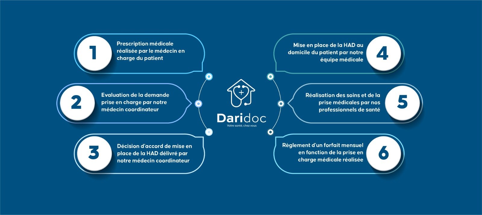 Daridoc est une solution innovante de soins médicaux à domicile, offrant des services adaptés aux besoins des patients nécessitant une hospitalisation à domicile (HAD).